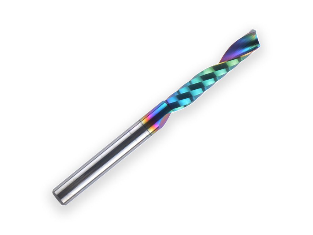 Jednobritá čelná fréza s DLC povlakom ("diamond like carbon - diamant ako uhlík"). DLC povlaky sa vyznačujú vysokou tvrdosťou a