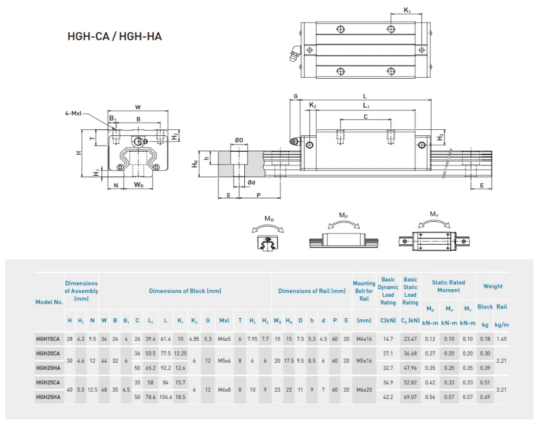 Vozík HGH15, vysoká presnosť a precízne spracovanie, 4-radové guľôčkové prevedenie.